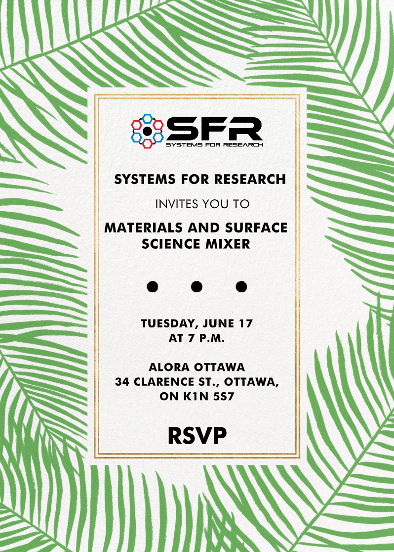 Save the date: A Materials and Surface Science Mixer will be hosted by SFR at the CCCE 2025 conference in Ottawa. The Mixer will be held on Tuesday, June 17, 7pm following the Materials Division AGM.